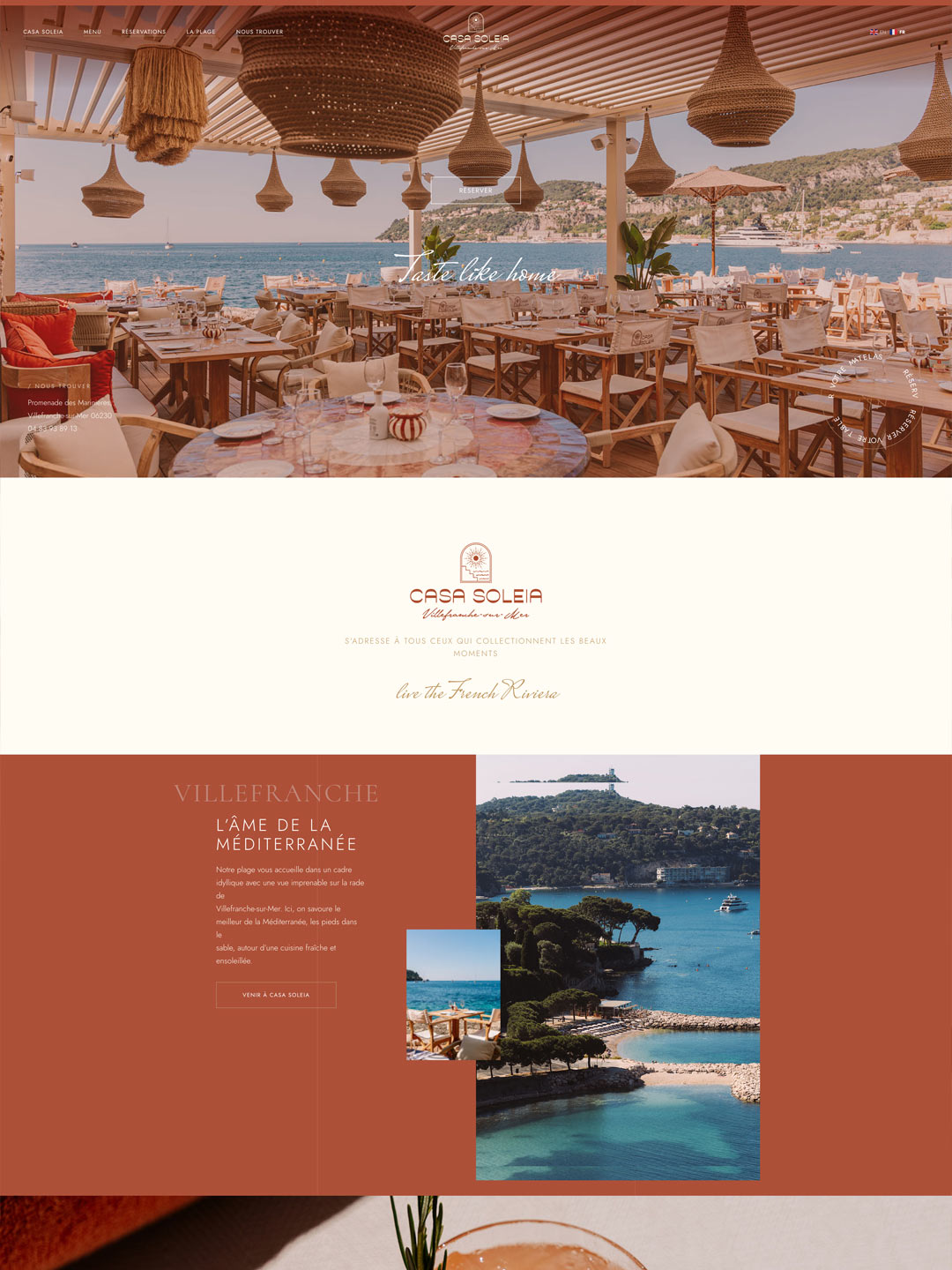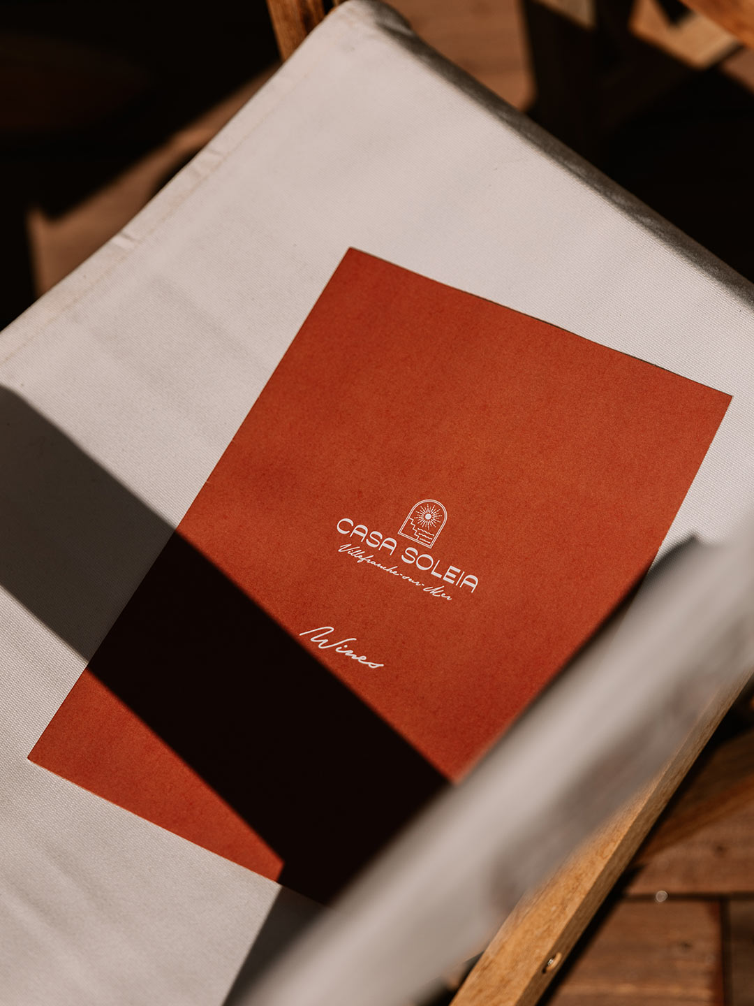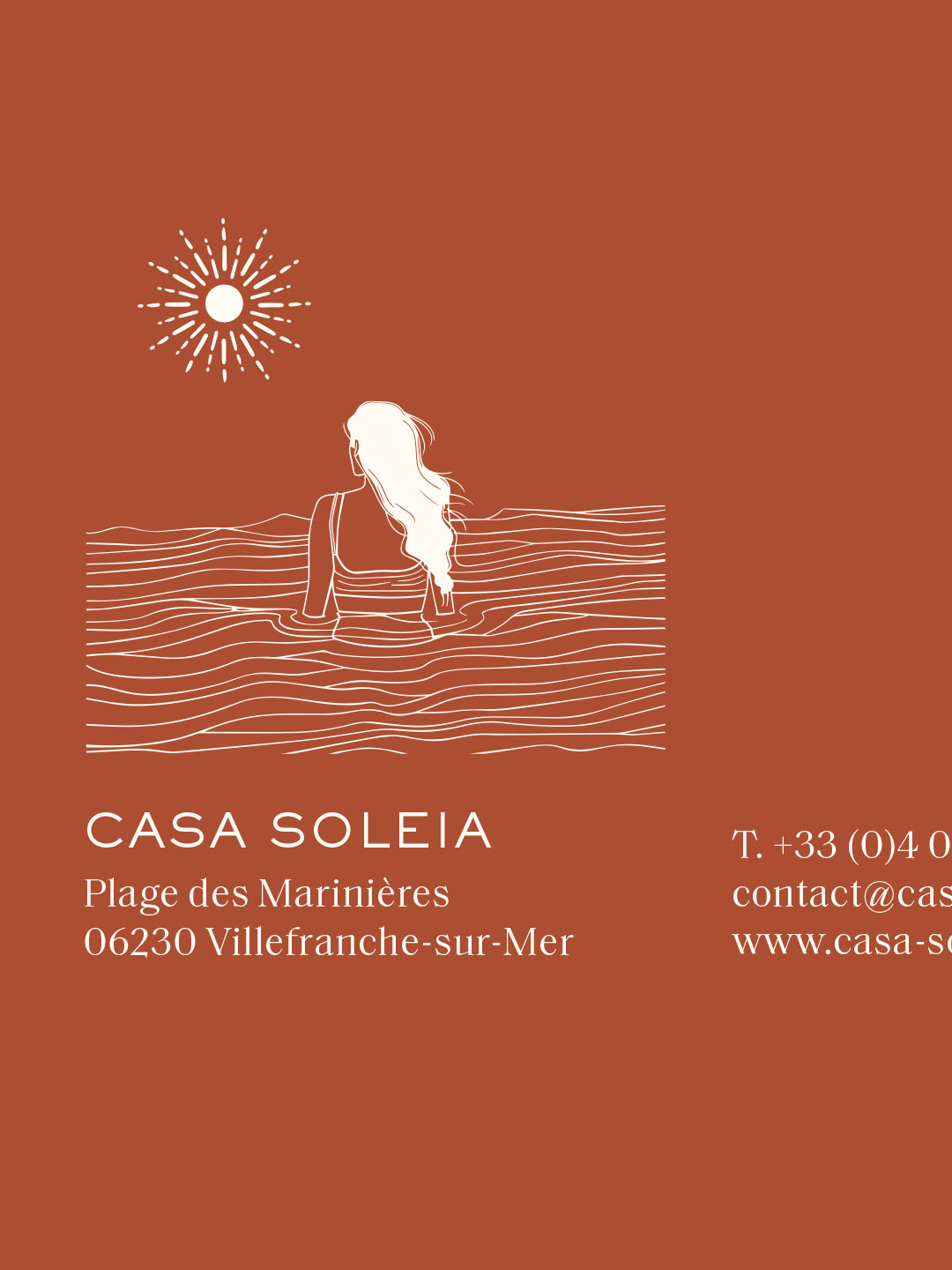 Pour Casa Soleia, l’agence a imaginé une identité visuelle qui reflète l’esprit du lieu : une plage d’exception, chaleureuse, bohème et pleine de charme.