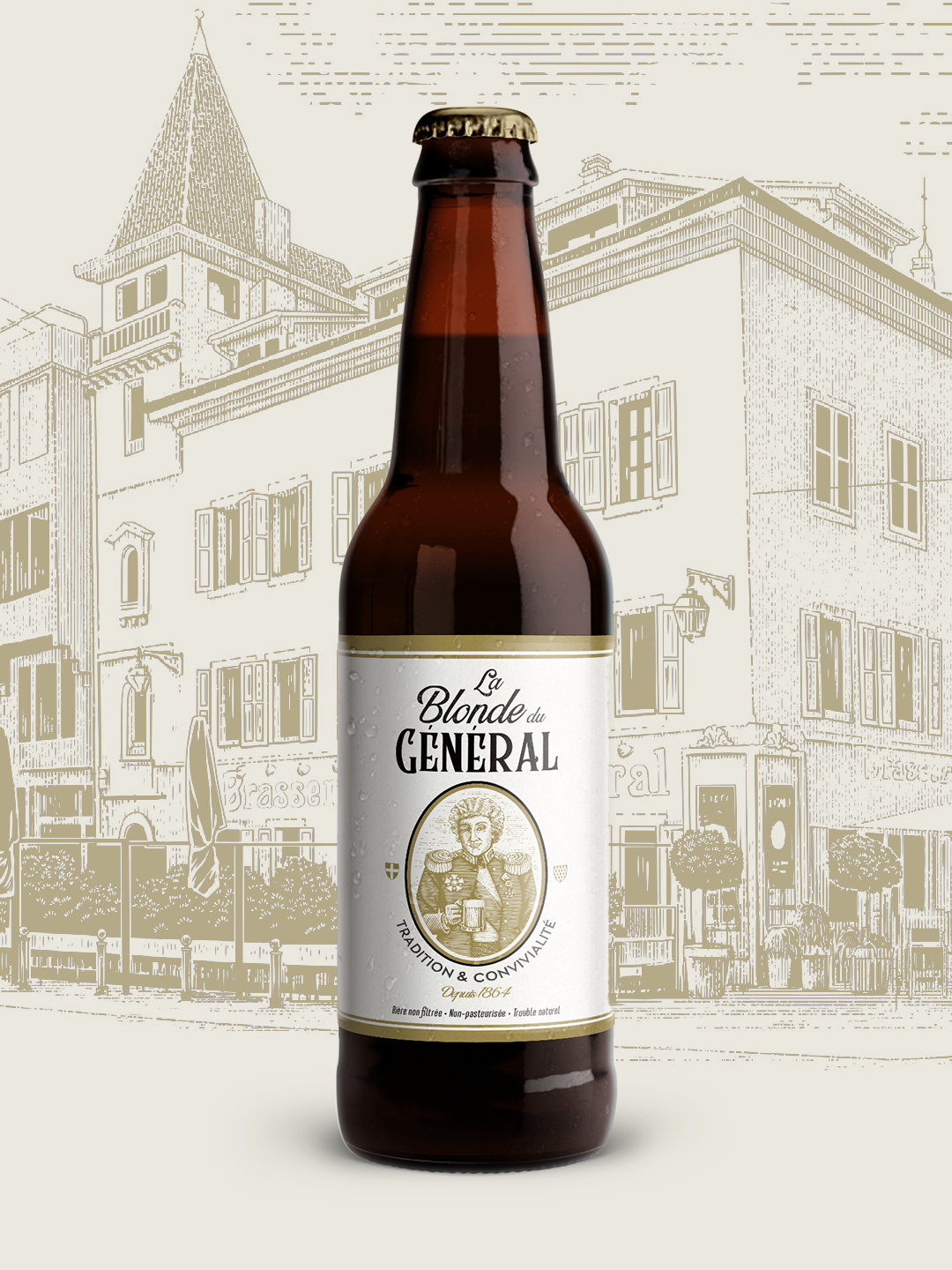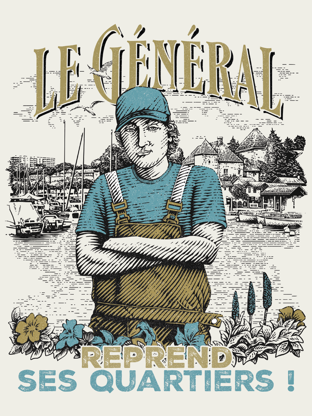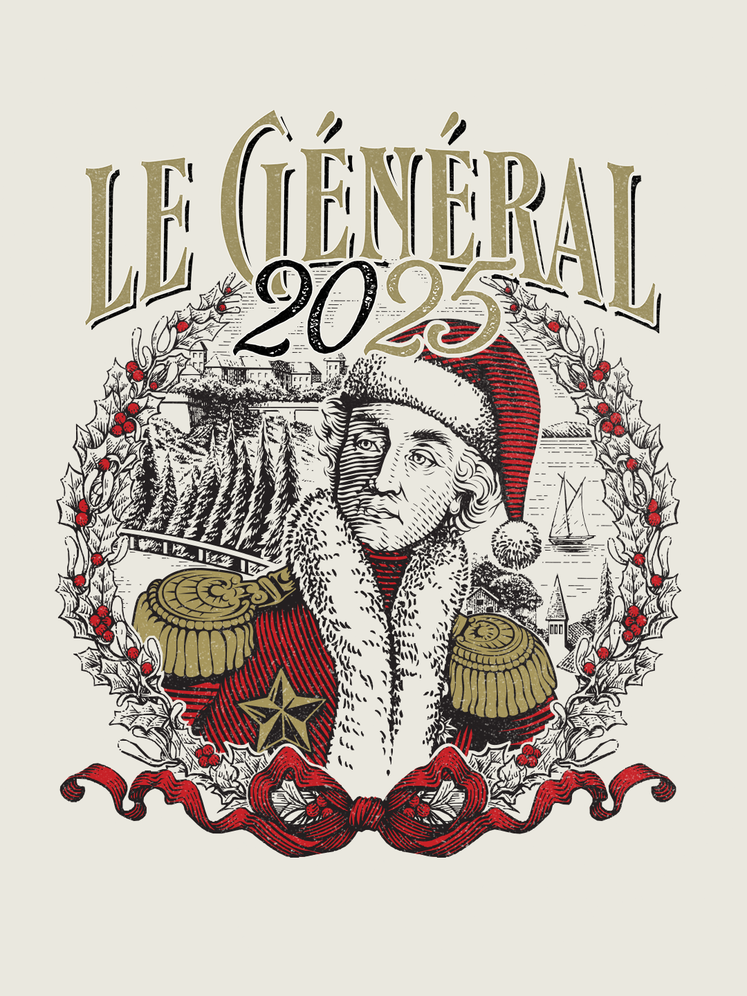 Nous avons imaginé un territoire graphique fort et fédérateur, enraciné dans l’histoire locale, où le personnage du Général devient figure centrale et populaire, traitée avec humour, caractère et élégance.