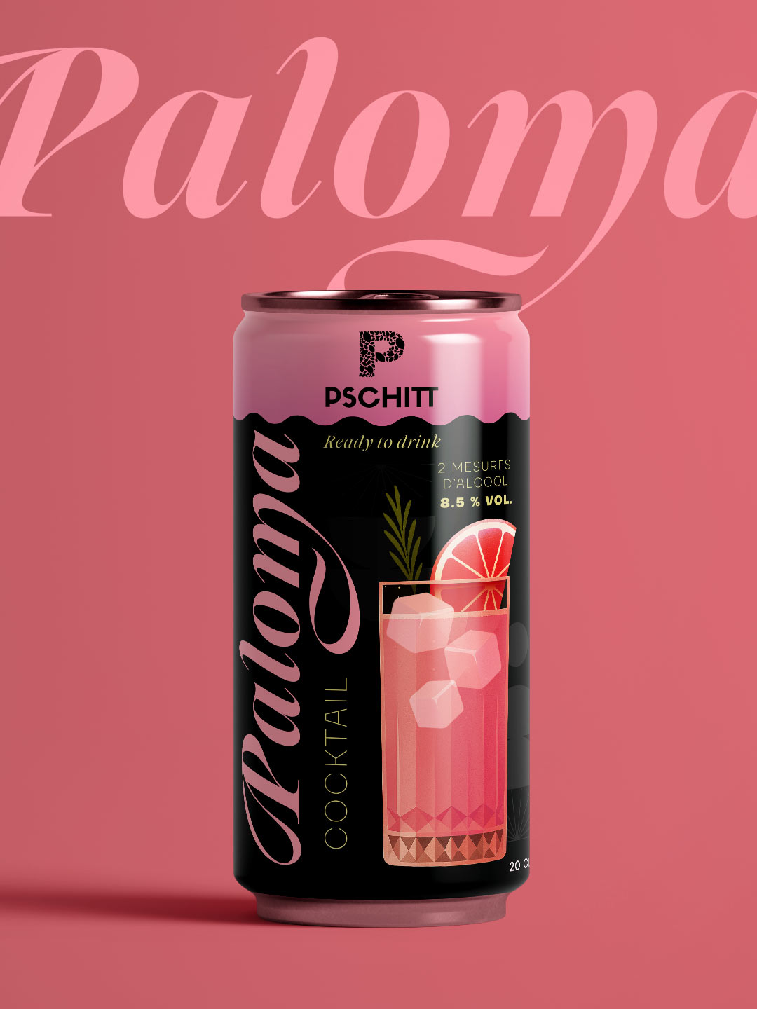 Pour accompagner le lancement de sa gamme de cocktails en canette, Pschitt a confié à l’agence la création d’un univers graphique à la fois élégant, frais et reconnaissable.